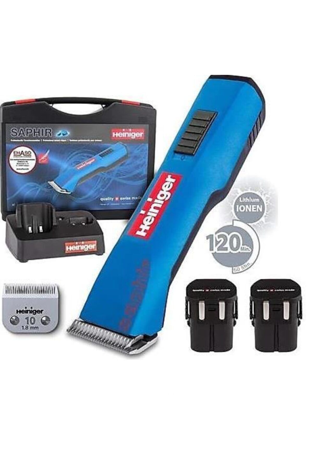 - Heiniger Saphir Evcil Hayvan Kırkma Makinesi Iki Akülü., profesyonel kullanım için tasarlanmış güçlü ve taşınabilir bir kırkma makinesidir.